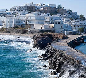 From the port, buses go every 30 minutes to the beautiful beaches of Agia Anna and Agios Prokopios.